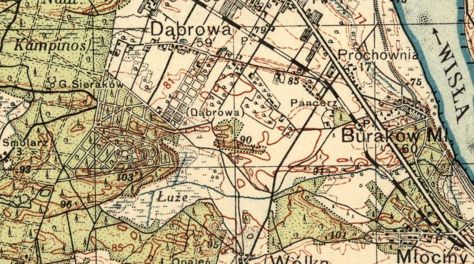 Przeglądając pewnego razu mapy topograficzne okolic Łomianek z lat. 30. XX wieku, natrafiłem na taki oto zagadkowy układ ścieżek w okolicach Łomianek-Dąbrowy: