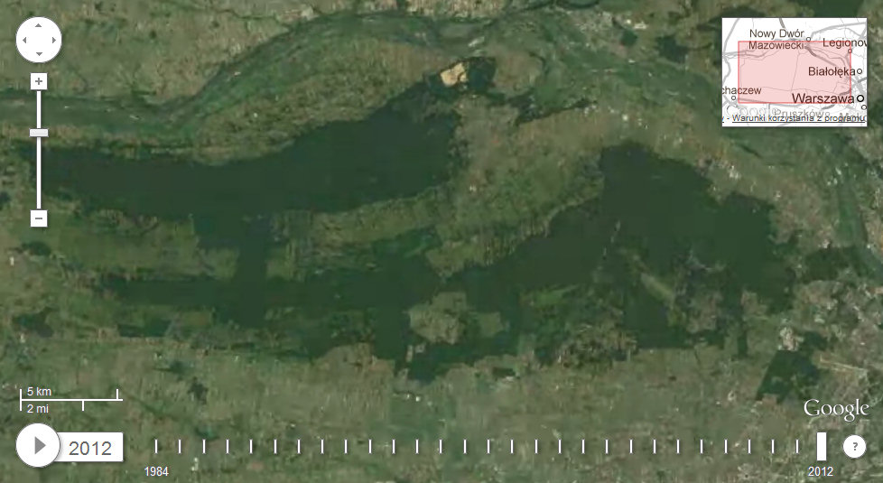 W ten sposób można także prześledzić, jak zmieniała się Puszcza Kampinoska. Okazuje się, że wbrew pozorom zmian wcale nie było dużo. Jest to spowodowane przede wszystkim względnie niską rozdzielczością obrazów satelitarnych – 15-30 metrów (oznacza to, że każdy piksel na zdjęciu to kwadrat o właśnie takim boku). Tak więc w praktyce na animacji widoczne są tylko zmiany na takich powierzchniach, które są wielokrotnością tych liczb. O ile w Puszczy Kampinoskiej dzieje się sporo, to generalnie nie na taką skalę.
