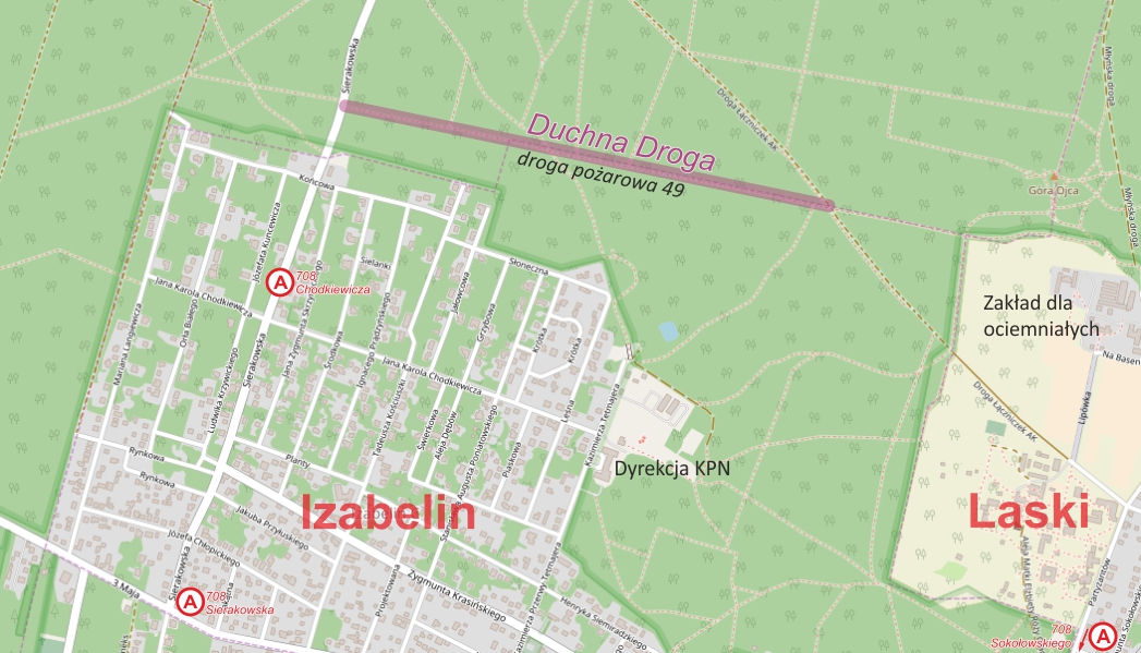 Racja, na mapce Duchna Droga jest oznaczona właściwie, natomiast droga pożarowa nr 49 jest na lewo od niej. Krótko mówiąc, Duchna Droga to nie jest droga pożarowa nr 49.