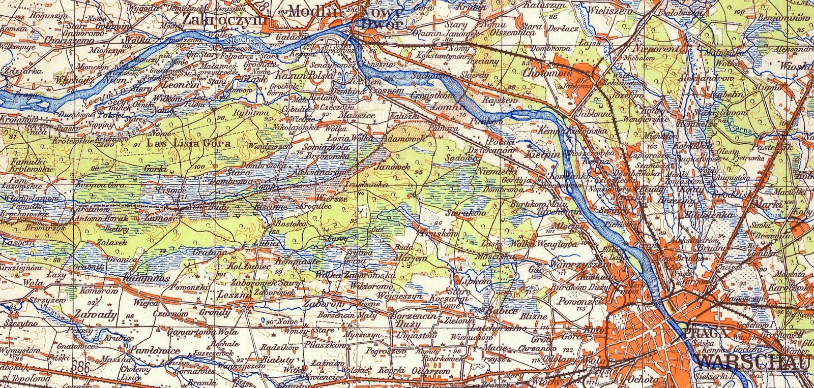 Niemiecka mapa 1:300 000, arkusz „Warschau” z 1943 r. (źródło: MapyWIG.org)