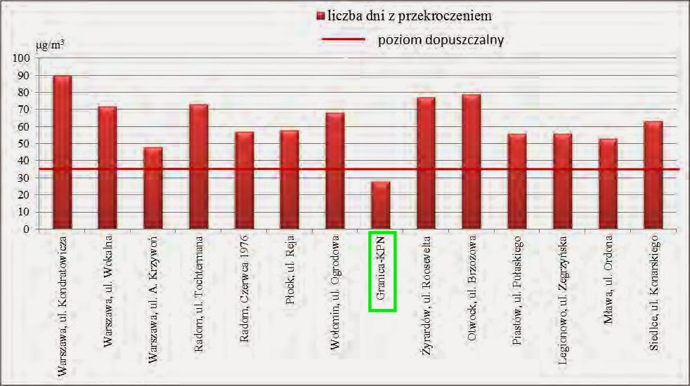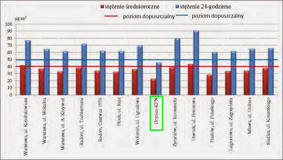 Sporo czytam w internecie opinii, że Puszcza Kampinoska to „zielone płuca Warszawy”. W sumie wydaje się to logiczne i intuicyjne. Ale czy surowe liczby potwierdzają, że w Puszczy Kampinoskiej faktycznie powietrze jest dużo czystsze niż np. w Warszawie? Odpowiedź przynosi raport Wojewódzkiej Inspekcji Ochrony Środowiska w Warszawie pt. „Roczna Ocena Jakości Powietrza w województwie mazowieckim. Raport za rok 2012”.