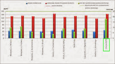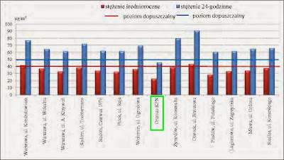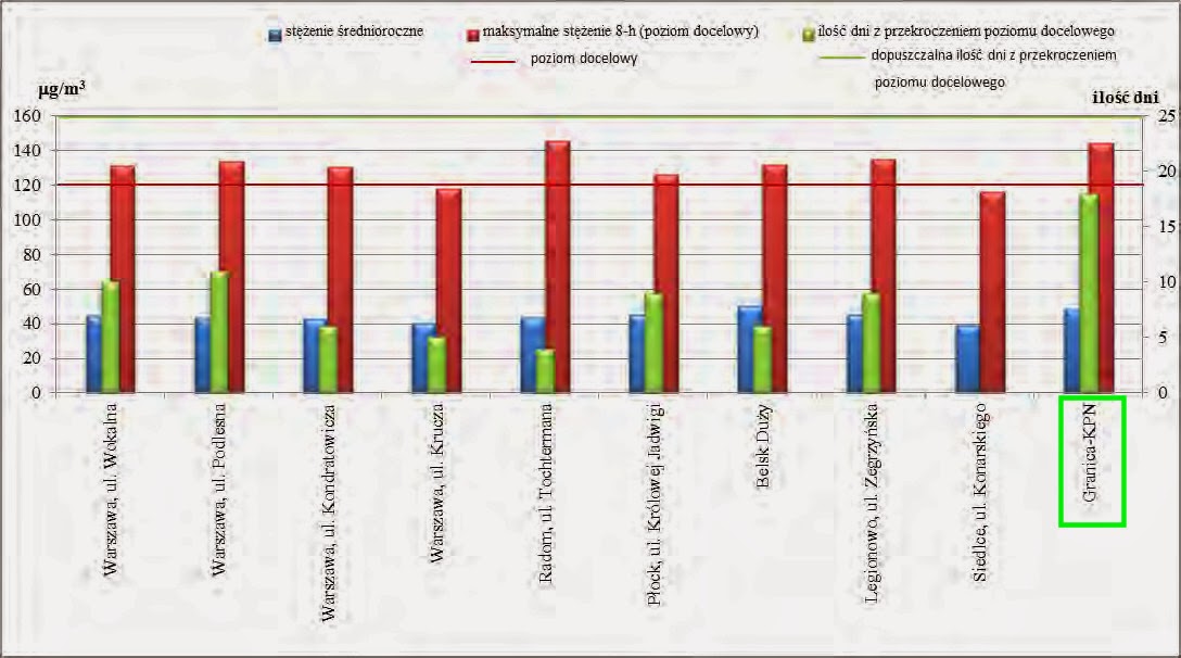 Zamiast się o nim nadmiernie rozpisywać, lepiej pokażę zamieszczone tam wykresy. Na każdym z nich pokazane jest stężenie wybranych substancji na kilku mazowieckich stacjach. Jedna z nich znajduje się w Granicy w gminie Kampinos.