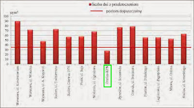 Liczba dni, gdy poziom PM10 był przekroczony