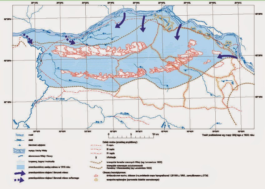 Najbardziej fascynujące są jednak mapy z 1813 i 1844 roku. Doskonale widać na nich, że dla Wisły nie jest problemem zalanie wszystkich obszarów bagiennych w Puszczy Kampinoskiej. Suche pozostają jedynie wały wydmowe. Krótko mówiąc, takie wydarzenie teoretycznie mogłoby się powtórzyć, gdyby w okolicach Puszczy pękł wał (odpukać!). Przykład Świniar koło Płocka z 2010 roku pokazuje, że wcale nie jest to zagrożenie czysto teoretyczne.