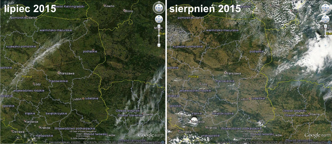 Zrobiło się już na tyle sucho, że skutki suszy jak na dłoni widać z kosmosu. Trudno ich nie zauważyć również poruszając się po Puszczy Kampinoskiej, gdzie wiele drzew – choć mamy przecież dopiero połowę sierpnia – już pożółkło. Gdyby nie temperatura można by więc pomyśleć, że mamy już jesień.