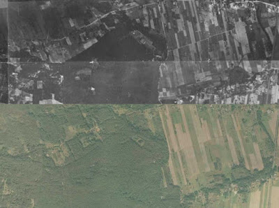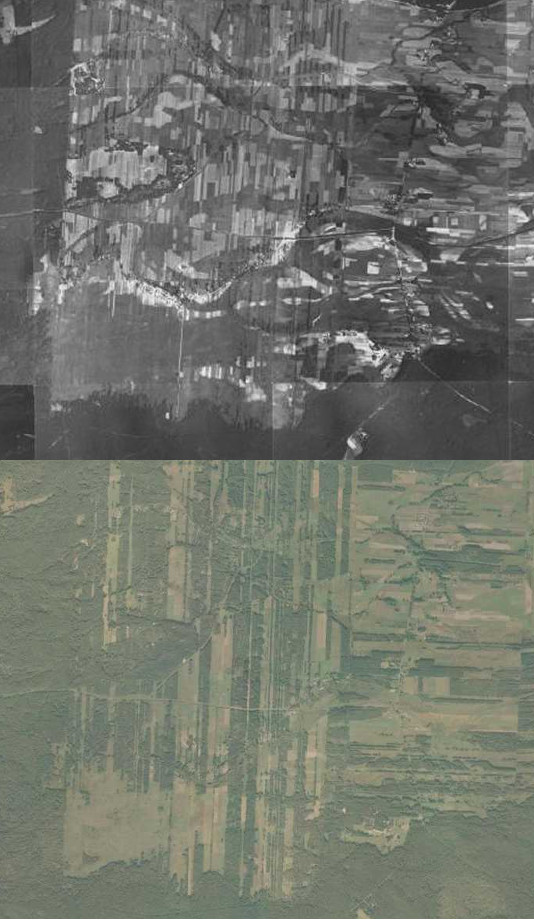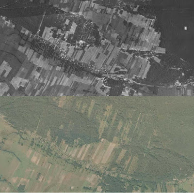 Kwestia techniczna: na razie porównywanie zdjęć archiwalnych z nowymi jest niestety dość skomplikowane – trzeba po prostu korzystać z dwóch różnych źródeł. Stare zdjęcia zobaczymy – jak wspomniałem – w serwisie mapowym Warszawy, w module „Warszawa historyczna”. Gdy do niego wejdziemy, należy najechać myszką na przycisk „zdjęcia” (prawy górny róg), a następnie wybrać z rozwiniętej listy „1976-1977”. Aktualne zdjęcia lotnicze Puszczy możemy z kolei przeglądać w Google Earth, na Google Maps lub na Geoportal.gov.pl. Miłej zabawy!