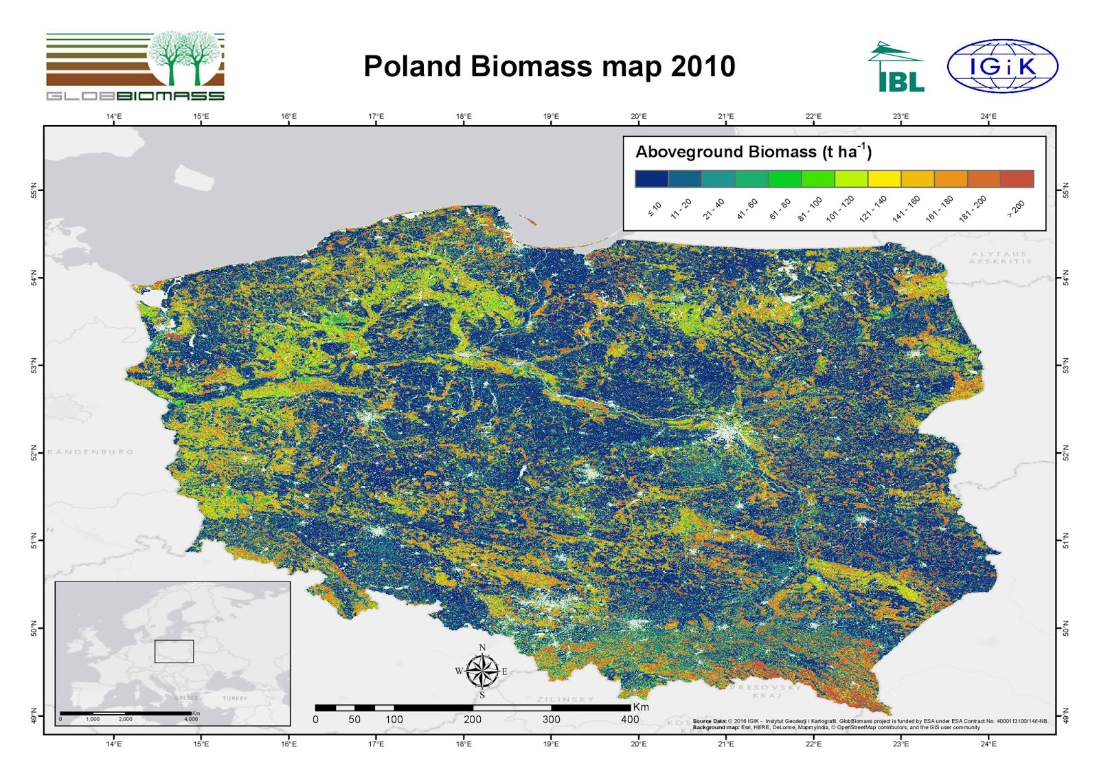 Instytucja ta właśnie zaprezentowała mapę, na której wyliczono biomasę leśną dla całej Polski. Wykorzystano do tego satelitarne zobrazowania optyczne oraz radarowe i dodatkowo uwzględniono dane z powierzchni próbnych.