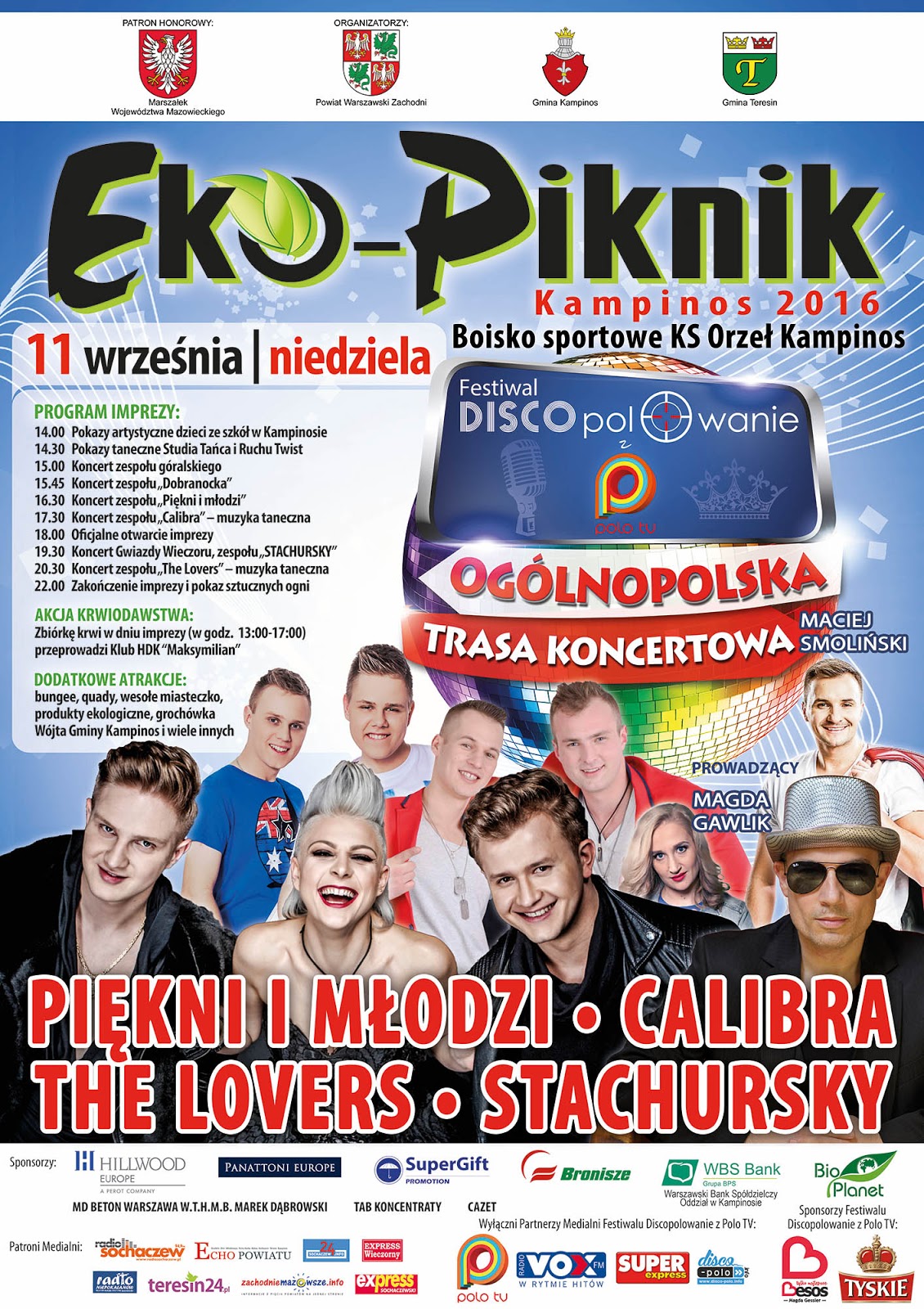 Imprezę plenerową planuje również gmina Kampinos. Gwoździem programu będzie koncert Stachurskiego. Poza tym przewidziano wiele innych występów artystycznych, pokaz sztucznych ogni czy akcję krwiodawstwa. Piknik odbędzie się 11 września.
