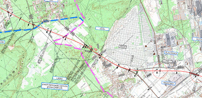 Przypomnijmy, że pod uwagę były brane dwa warianty. Pierwszy: starym śladem drogi krajowej nr 7 i drugi – przez lotnisko Bemowo, okolice Cmentarza Północnego i skrajem Kampinoskiego Parku Narodowego w okolicach Łomianek-Dąbrowy. Mapę wybranego wariantu publikuję poniżej (konkretnie rzecz biorąc, wybór padł na wariant II).