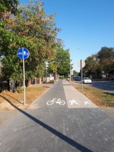 Kontynuujemy jazdę w kierunku Warszawy. W centrum Izabelina trasa jest głównie ciągiem pieszo-rowerowym, a więc czymś, co irytuje zarówno pieszych, jak i rowerzystów – szczególnie gdy mija się przystanki autobusowe, przy których robi się bardzo wąsko i łatwo o niebezpieczną sytuację.