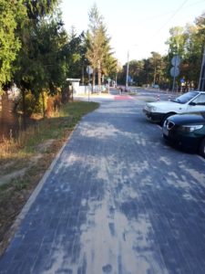 Wjeżdżając do Lasek, mamy niespodziankę. Ścieżka się nagle urywa! W miejscu, gdzie wydaje się najbardziej potrzebna mieszkańcom, którzy chcieliby sobie spokojnie podjechać do pobliskiego sklepu czy punktu usługowego! Na pocieszenie jest jednak świeżo wylany asfalt, po którym można sobie milutko śmignąć… o ile ktoś ma odwagę.