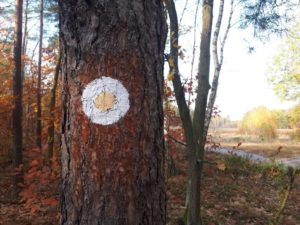 W ostatnim czasie Kampinoski Park Narodowy wytyczył nowy szlak, a właściwie szlaczek, bo liczy raptem niecałe 800 m. Sam trafiłem na niego przypadkiem, bo ani Park nie poinformował oficjalnie o jego wytyczeniu, ani też nie został naniesiony na mapy dostępne na stronie KPN-u. Co więcej, na razie oznaczony jest jedynie znakami na drzewach, a nie – tak jak w przypadku innych szlaków – również drewnianymi drogowskazami z kilometrażem.