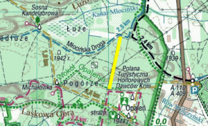 Nowy żółty szlak ma charakter łącznikowo-spacerowy, a więc z pewnością pozwoli urozmaicić krótkie spacery w bezpośredniej okolicy Warszawy. Od strony północnej zaczyna się niedaleko polany przy uroczysku Łuże, bezpośrednio przy niebieskim szlaku oraz około 200 metrów od szlaku czarnego i zielonego rowerowego. Biegnie jedną ścieżką prosto na południe, tak więc trudno na nim zbłądzić. Kończy się niedaleko polany Opaleń, gdzie rozchodzi się czerwony szlak pieszy oraz ścieżka dydaktyczna.