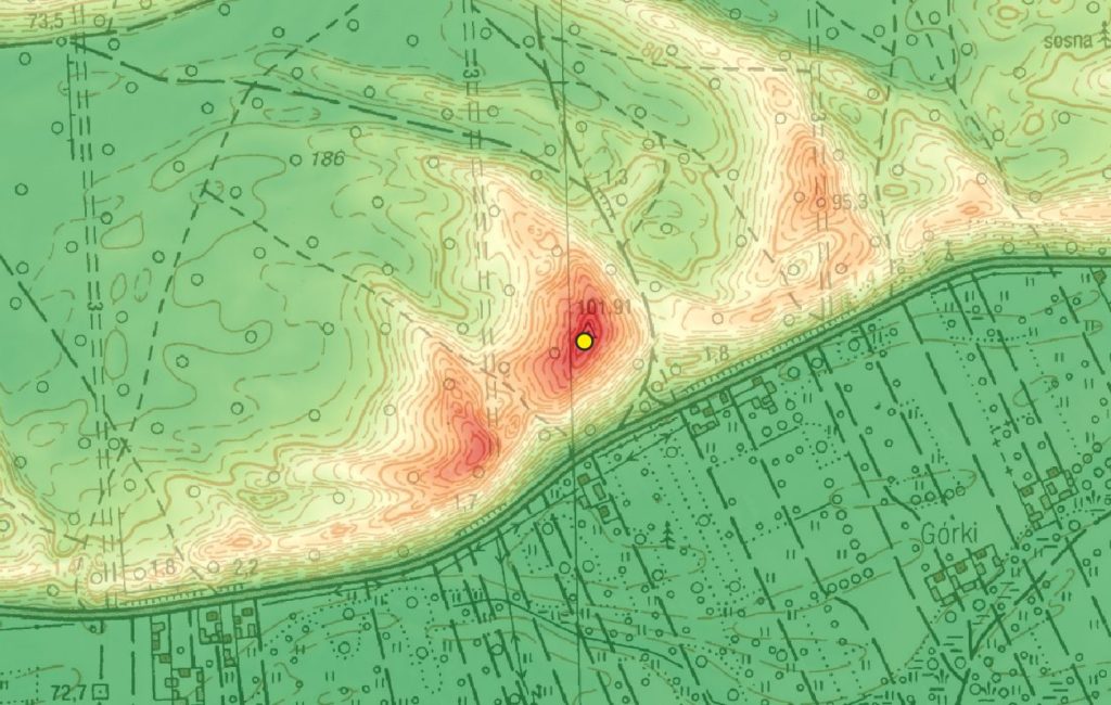 Jeśli bezwzględna, to obiektem naszych zainteresowań jest niewielki pagórek położony tuż obok parkingu przy polanie Opaleń. W 2011 r. na podstawie mapy topograficznej jego wysokość oszacowałem na 106,2 m n.p.m. NMT ze skanowania laserowego daje natomiast wartość tylko o 4 decymetry wyższą (106,6).