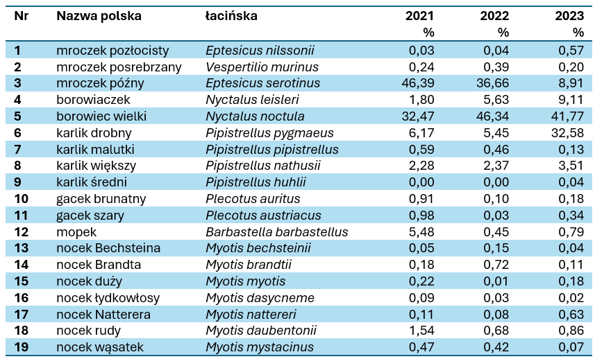 Warto zastrzec, że ze względu na metodę badania, odkrycie to wymaga jeszcze potwierdzenia u niezależnego eksperta – podkreślono na stronie projektu. Wyniki monitoringu wskazują ponadto, że najczęściej rejestrowane gatunki nietoperza w Puszczy to: mroczek późny, borowiec wielki i karlik drobny. Pozostałe gatunki, w tym mokradłowe, są zdecydowanie rzadsze.
