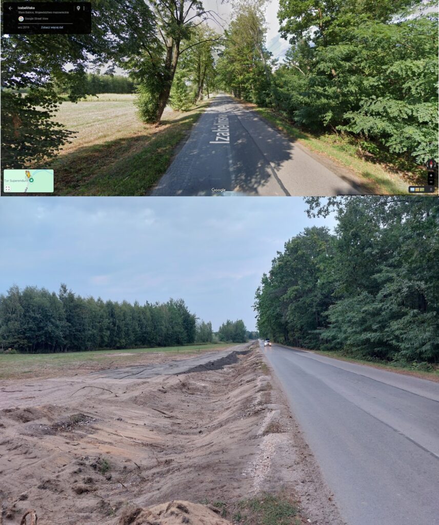 Słowem komentarza – nie chcę tej inwestycji jednoznacznie potępiać. Nie wątpię, że wielu mieszkańców Izabelina i Starych Babic od dawna domagało się tu chodnika czy ścieżki rowerowej. Trudno jednak nie odnotować w tym miejscu, jak bardzo zniszczono przy tej okazji okoliczny krajobraz. I to nieodwracalnie. Na usta ciśnie się pytanie, czy nie dało się wyremontować tej drogi bez aż tak drastycznej ingerencji? Dyskusja na ten temat z pewnością byłaby ciekawa, choć z pewnością jest już “musztardą po obiedzie”.