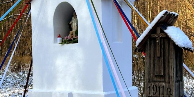 Choć wskutek postępującego wykupu prywatnych gruntów wiele kampinoskich wsi zniknęło już z powierzchni ziemi, to widocznym śladem po nich wciąż pozostają przydrożne kapliczki. Większość z nich jest mocno nadszarpnięta zębem czasu – na szczęście nie brak inicjatyw, by przywracać im dawny blask. Ostatni taki przykład pochodzi z Grabiny.