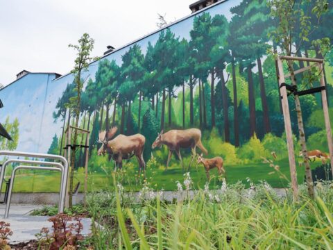 Rzut beretem od jednego z popularniejszych wjazdów do Kampinoskiego Parku Narodowego od strony stolicy powstał mural o puszczańskiej tematyce. Mural przedstawia korytarz ekologiczny między Kampinoskim…