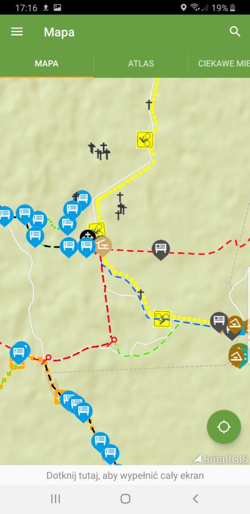 - Szlaki turystyczne – nie (chyba, że z zewnętrznych map)