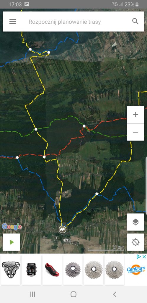 - Wyznaczanie trasy pieszej/rowerowej – tak, ale tylko po szlakach