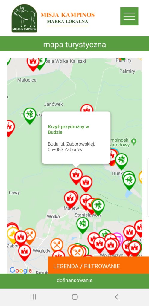 Ten program to de facto zbiór ciekawych lub przydatnych punktów w Puszczy Kampinoskiej i okolicy wyświetlonych na tle Map Google. Znajdziemy tu nie tylko atrakcje turystyczne, ale także miejsca noclegowe czy restauracje. Wybrane atrakcje posiadają rozbudowane opisy krajoznawcze.
