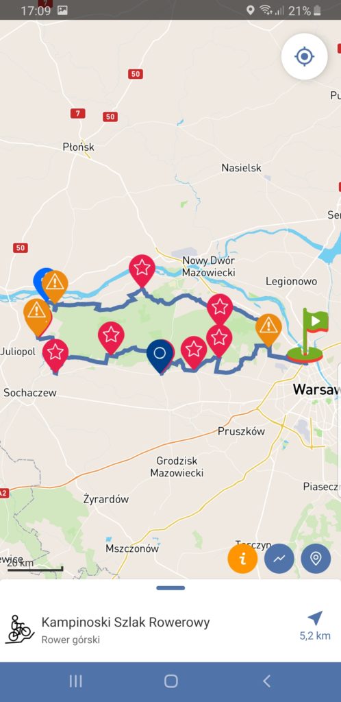 Świetna aplikacja nie tylko do poruszania się po Puszczy, ale także po całym Mazowszu. Znajdziemy tu nie tylko przebieg szlaków turystycznych (również rowerowych i ścieżek edukacyjnych), ale także informacje o nich (choćby deniwelacje). Na plus jest także tryb pracy off-line oraz możliwość wykorzystania różnych podkładów mapowych – od Map Google po OpenStreetMap.